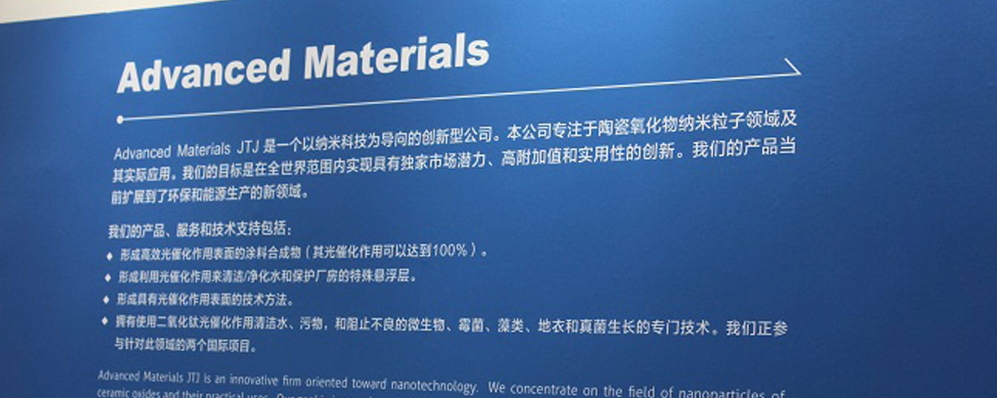 Advanced Materials-JTJ se díky podpoře Ministerstva zahraničních věcí ČR a svého čínského obchodního partnera – společnosti YunKe Environmental Protection Technology Co. Ltd. (YunKe) zúčastnila největšího čínského veletrhu služeb China Beijing International Fair for Trade in Services (CIFTIS), který se v Pekingu proběhnul v termínu od 28. května do 1. června 2016. Vysoce účinné fotokatalytické nátěry FN Advanced Materials-JTJ prezentovali návštěvníkům veletrhu pracovníci společnosti YunKe v rámci českého pavilonu zajištěného s podporou MZV ČR, Czechinvestu a pracovníků ambasády ČR v Pekingu.