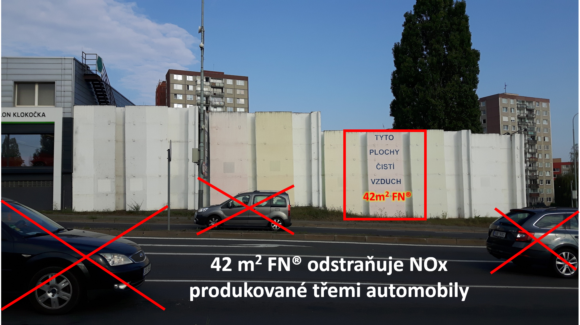 Patnáct metrů čtverečních natřené fasády v průměru kompenzuje emise z provozu jednoho osobního automobilu s dieselovým motorem a zároveň fasáda natřená FN® nátěrem vytváří díky vysoce oxidačnímu polovodičovému efektu bezúdržbový samočistící povrch, který prodlužuje životnost fasády a šetří peníze za její údržbu.