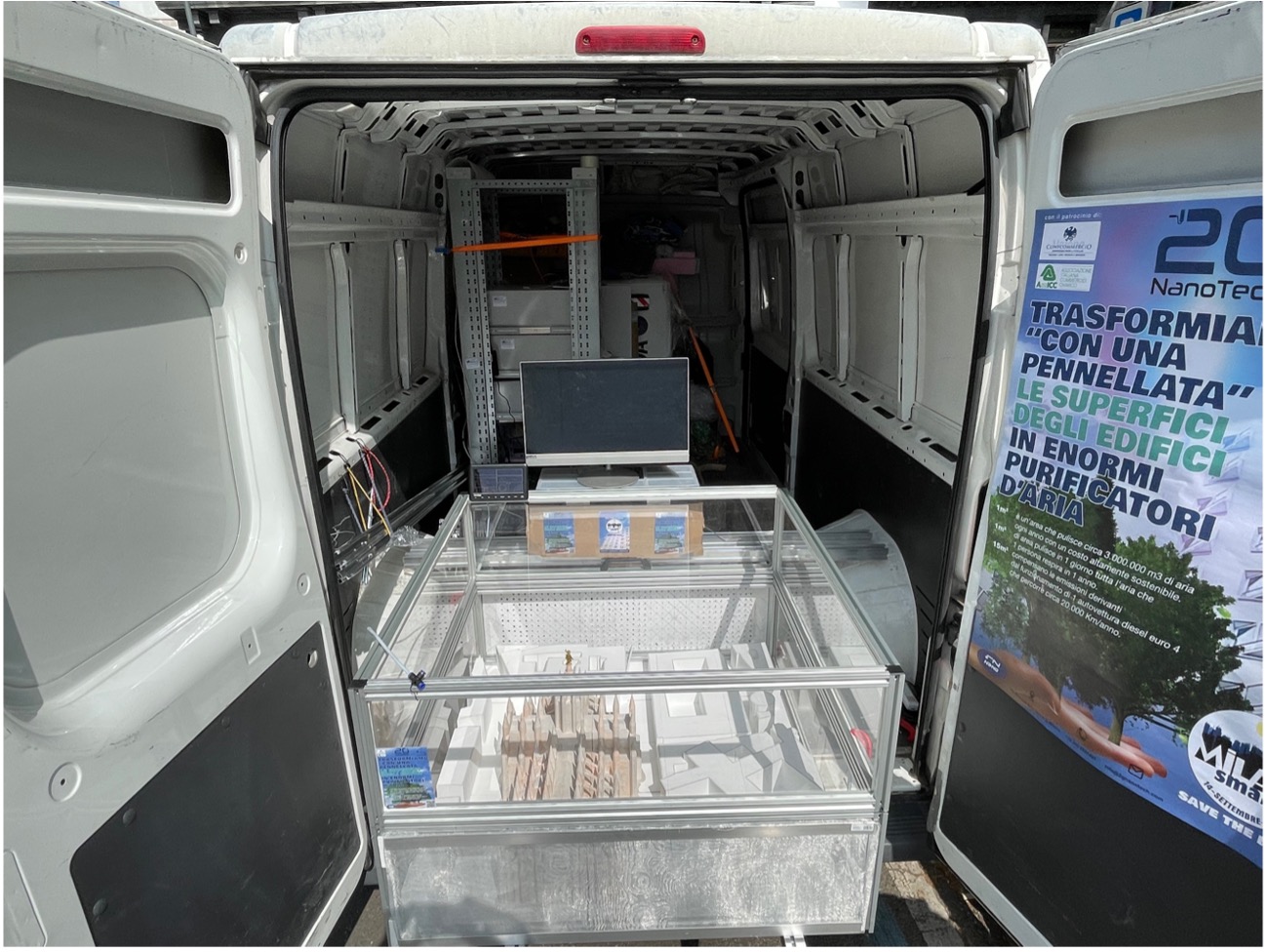 The measurement took place in cooperation with the Italian accredited laboratory Indam and with our exclusive partner for Lombradia, the company 2G NanoTech. The measurements took place on samples of the facade and on the model of the city of Milan with the cathedral.
