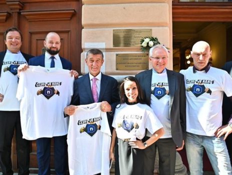 Premiér ČR Andrej Babiš u české nano zdi na velvyslanectví v Budapešti